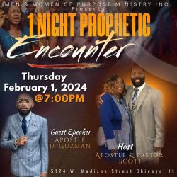 MWPM Presents: A Prophetic Encounter – Night #2 February 1, 2024 Video SHARE ON Twitter Facebook Buffer LinkedIn Pin It Leave a Reply Cancel replyYour email address will not be published. Required fields are marked *Comment * Name * Email * Website Δ Continue Reading MWPM Brotherhood Service MWPM Sisterhood Sunday