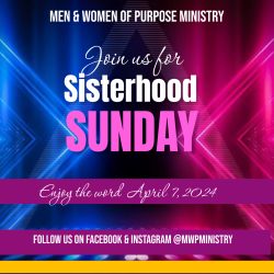 MWPM Sisterhood Sunday April 7, 2024 Video SHARE ON Twitter Facebook Buffer LinkedIn Pin It Leave a Reply Cancel replyYour email address will not be published. Required fields are marked *Comment * Name * Email * Website Δ Continue Reading Easter Sunday 2024 MWPM Family & Friends Sunday
